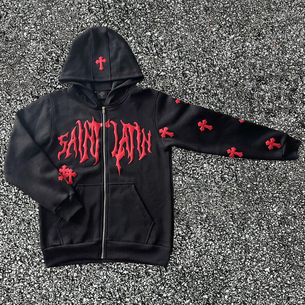 Retro Street Long Sleeve Hip Hop Zip Hoodie