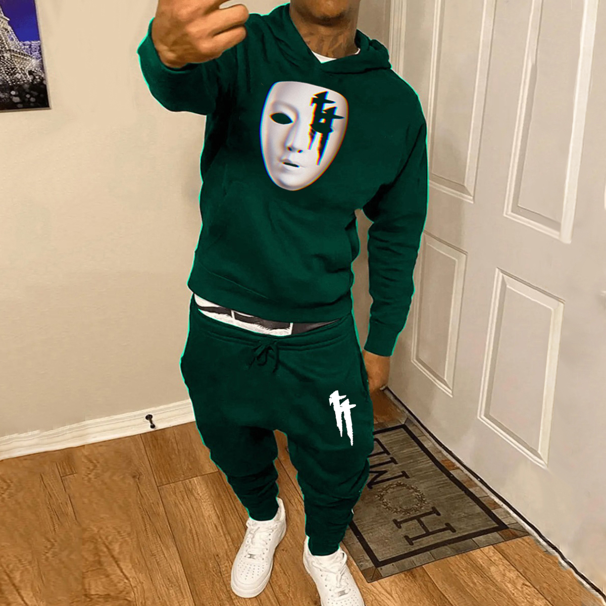 • Casual Cross Print Hoodie And Pants Two Piece Set