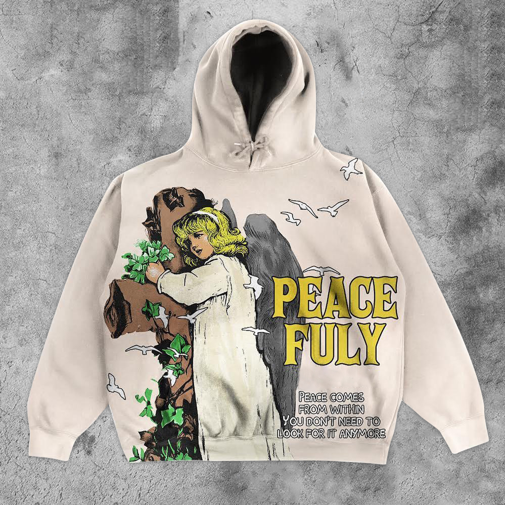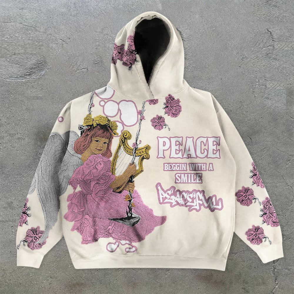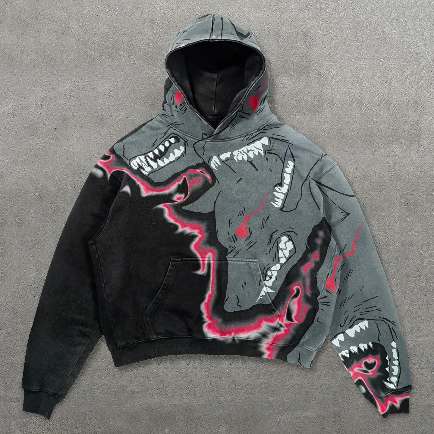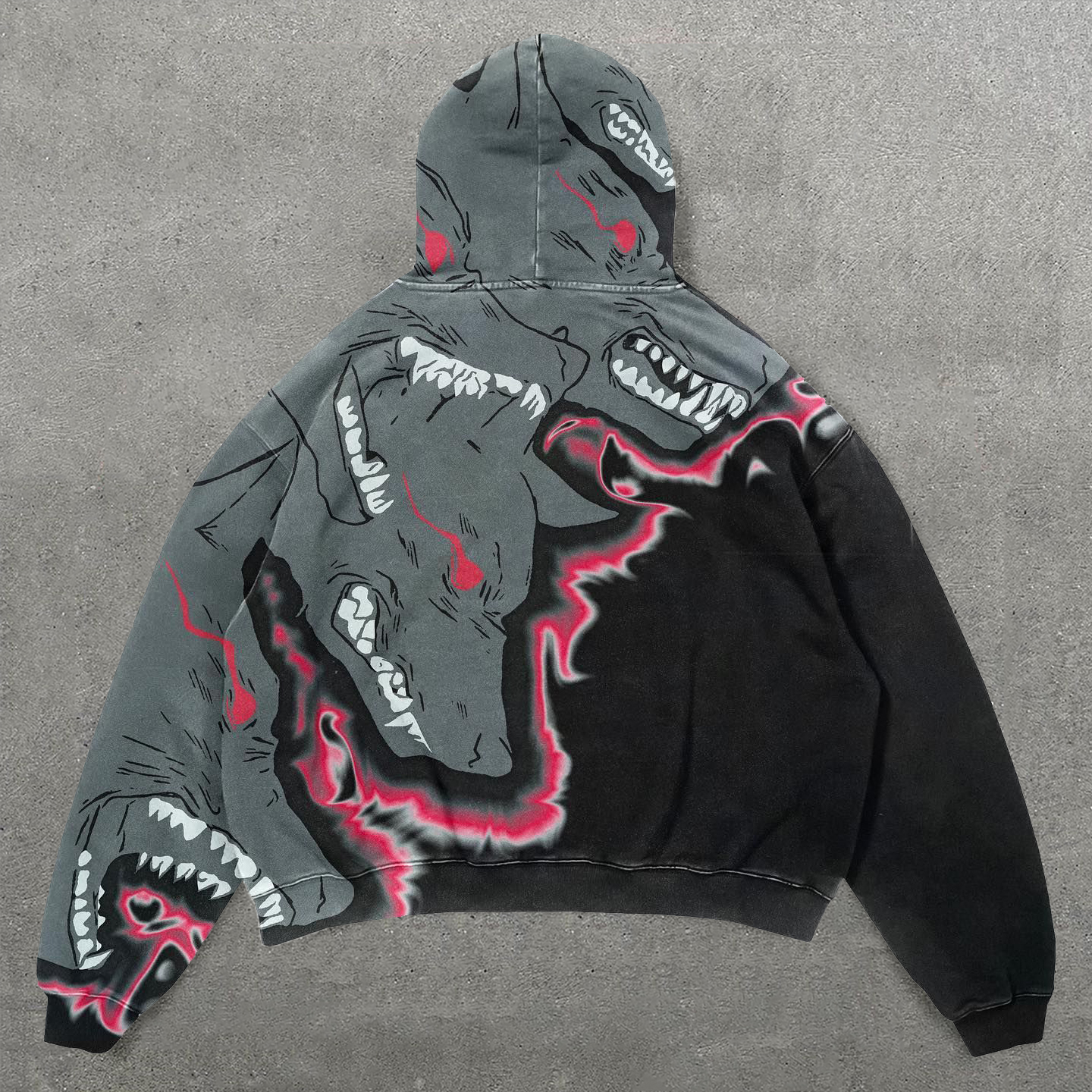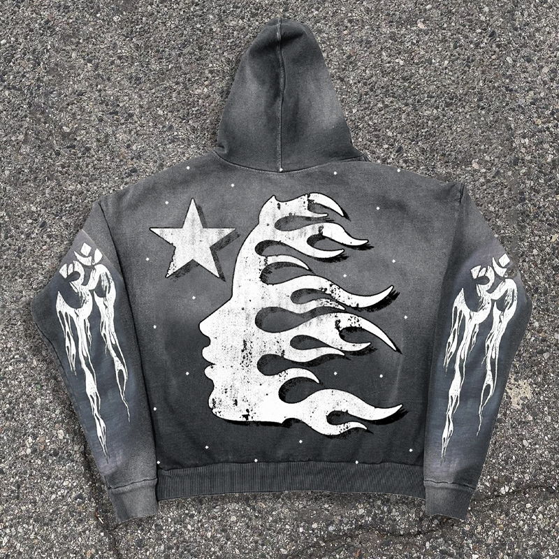 Trendy Retro Print Street Hip Hop Long Sleeve Hoodie