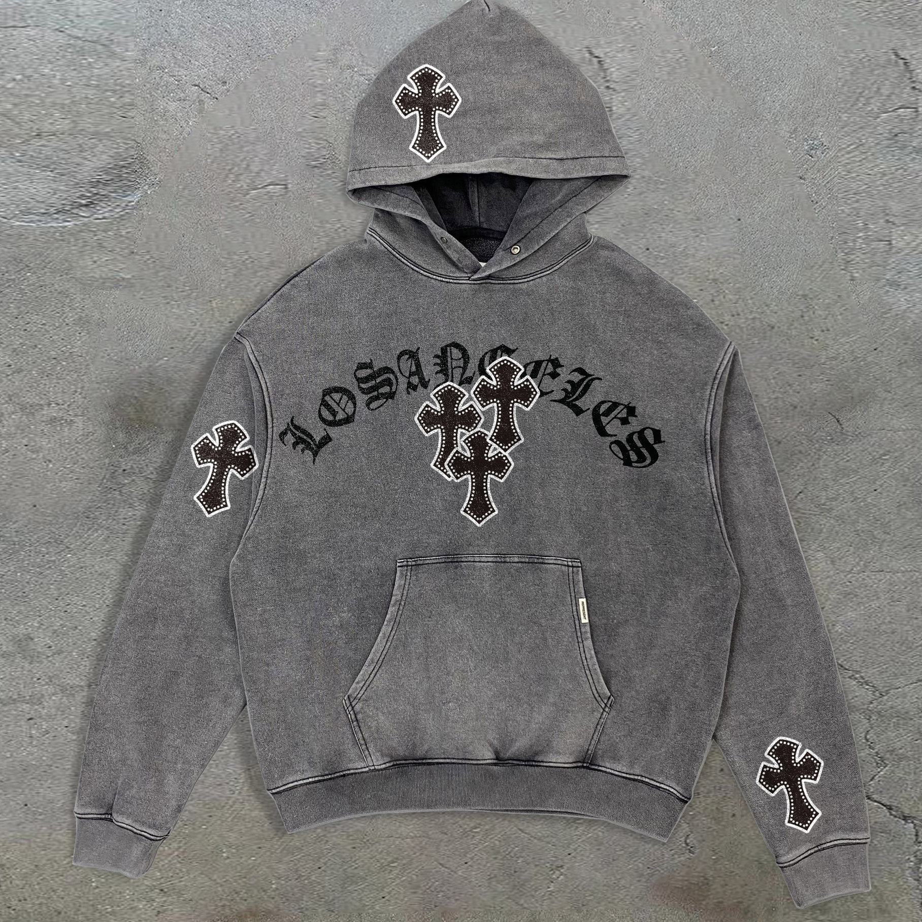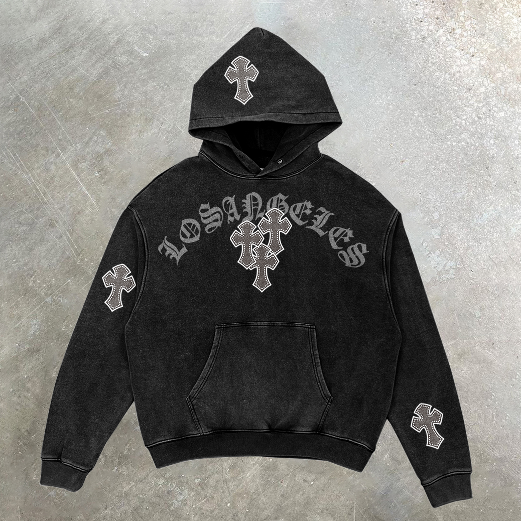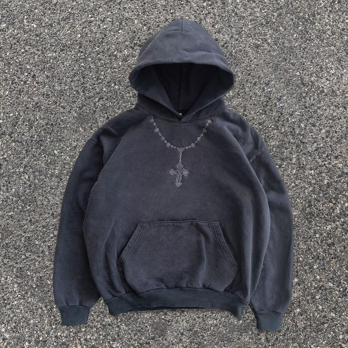 Cross Print Vintage Faith Long Sleeve Hoodie
