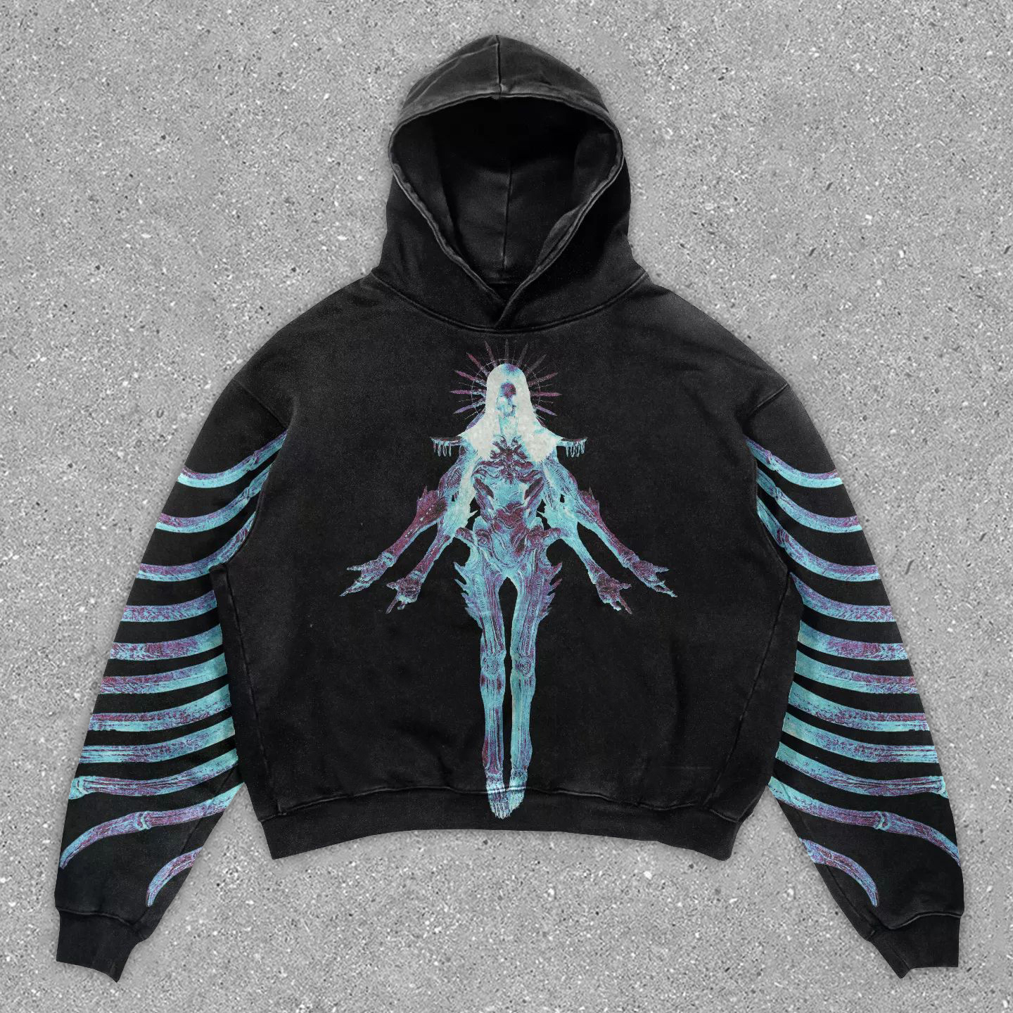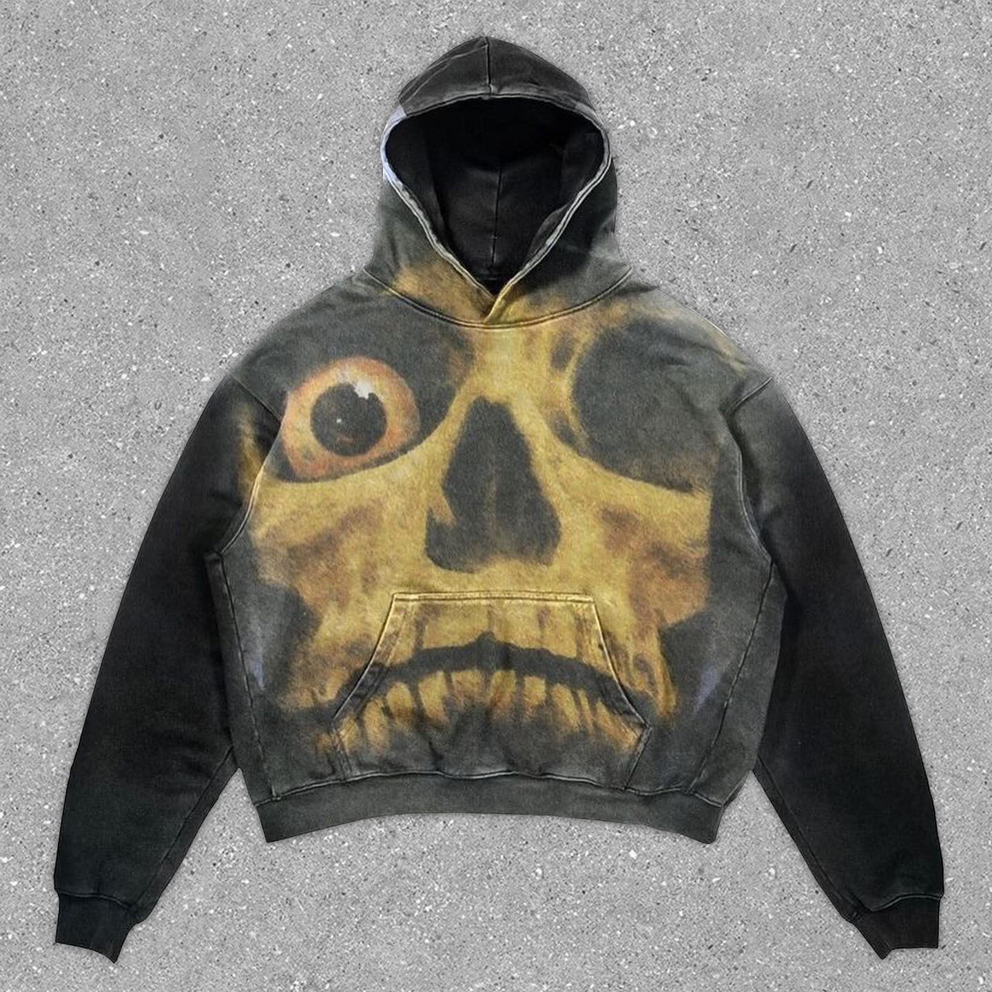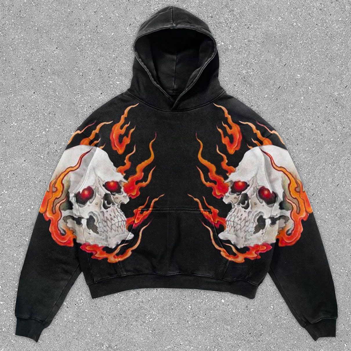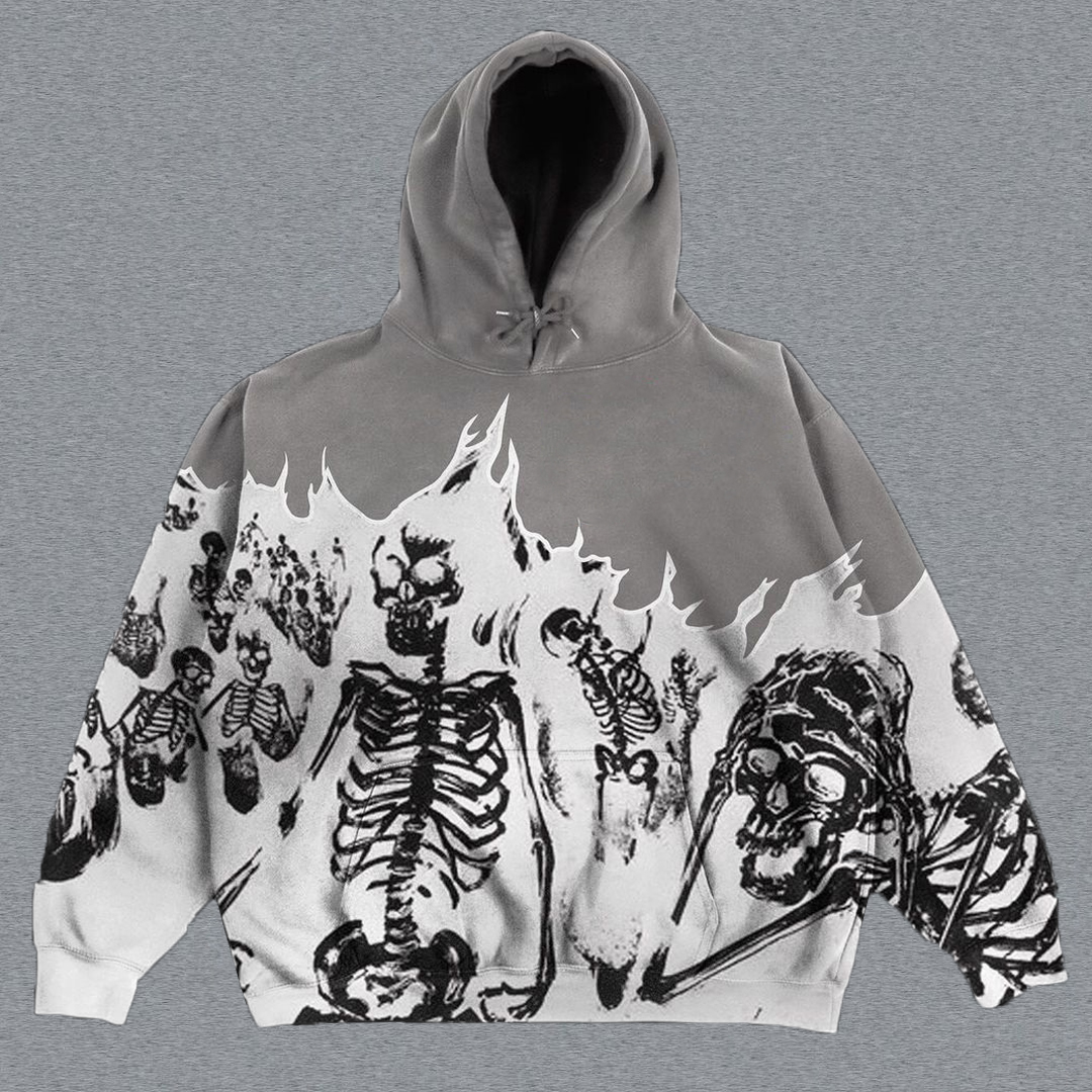 Casual Vintage Skull Print Long Sleeve Hoodie
