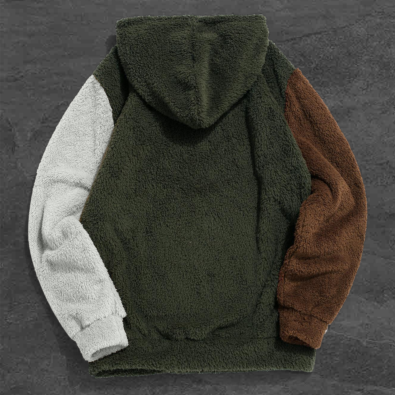 Patchwork Fashion Retro Contrast Plush Hoodie