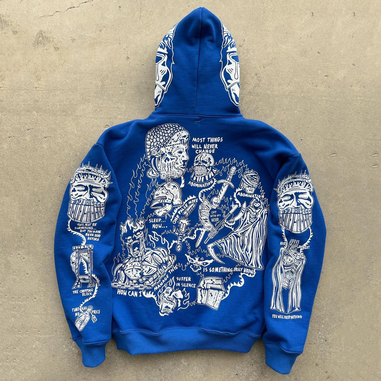 Retro Street Hip Hop Long Sleeve Zip Hoodie