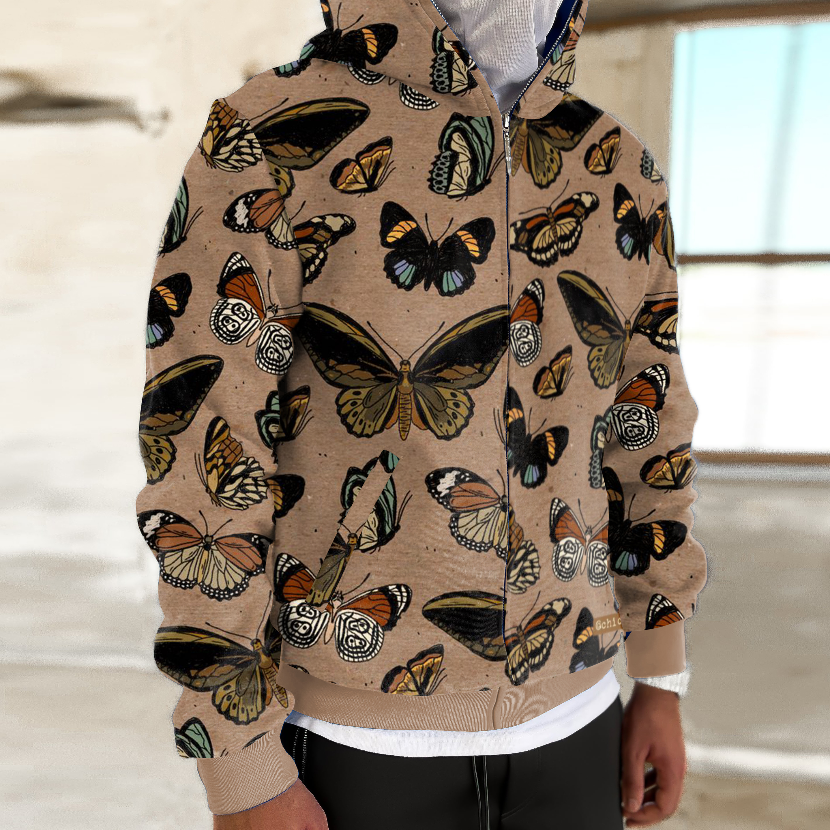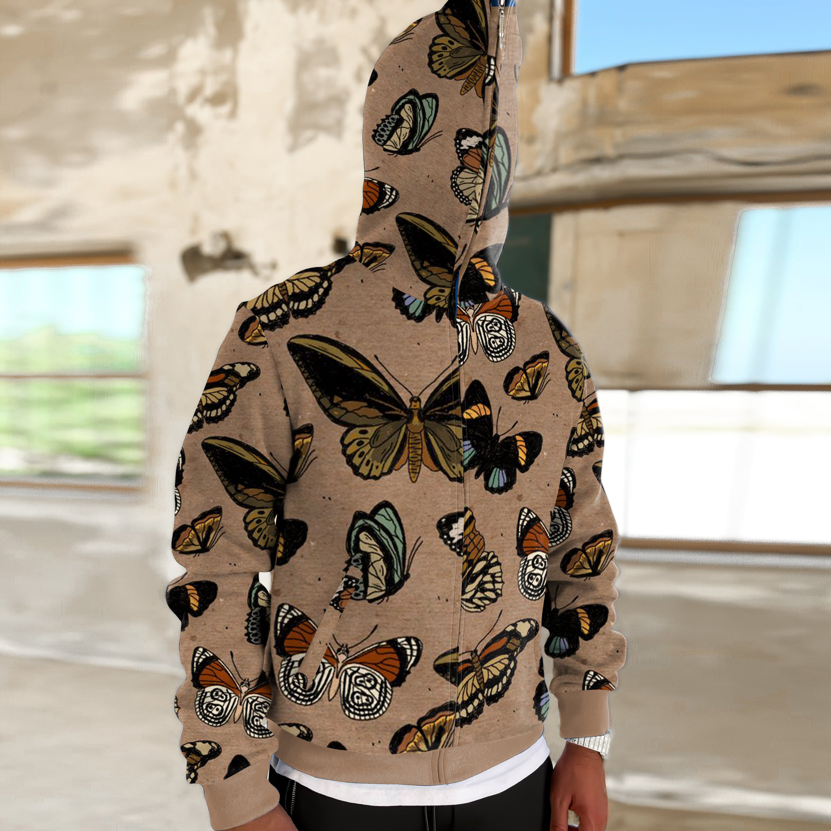 Vintage Butterfly Casual Long Sleeve Full Zip Hoodie