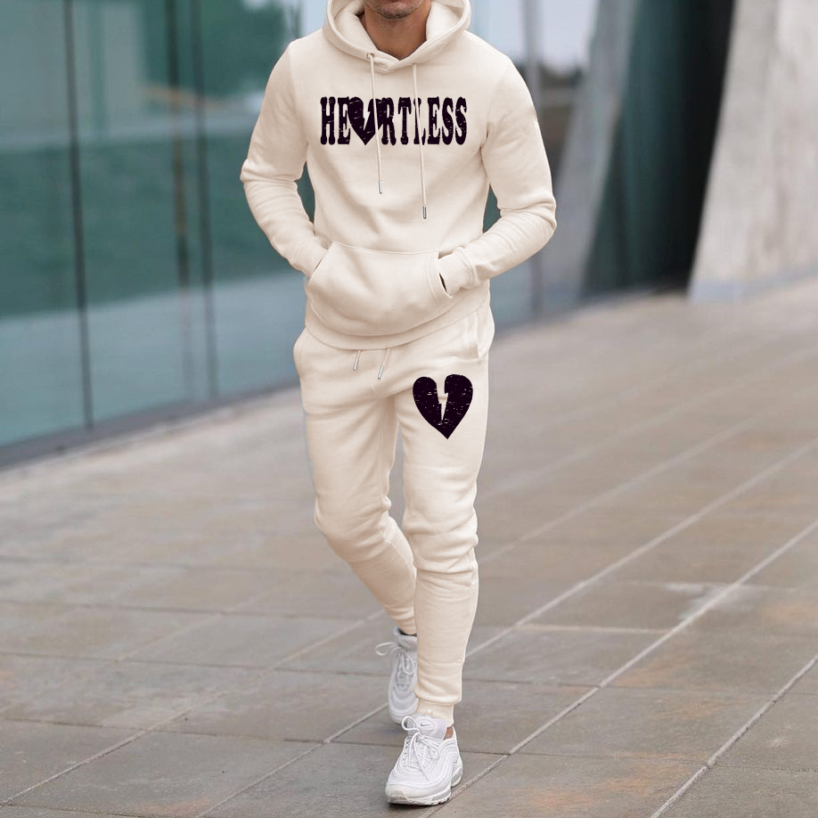 Casual Hertless Print Hoodie And Pants Two Piece Set