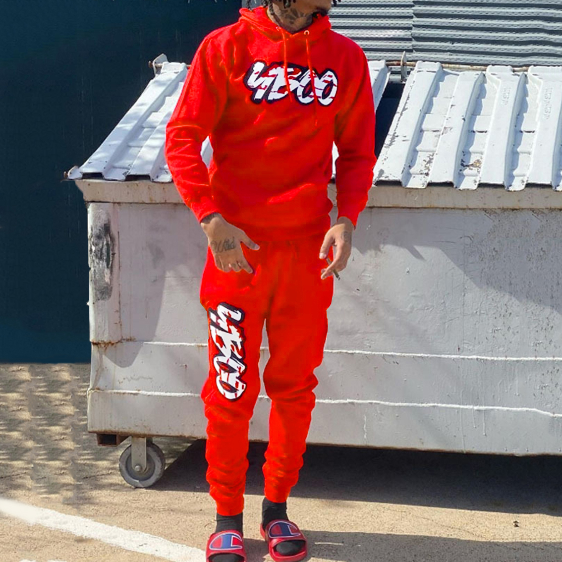 Casual Yboo Print Hoodie And Pants Two Piece Set