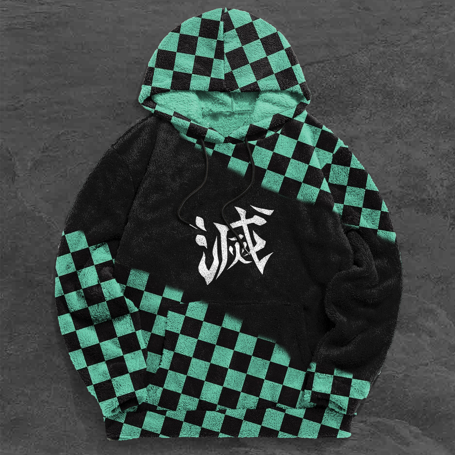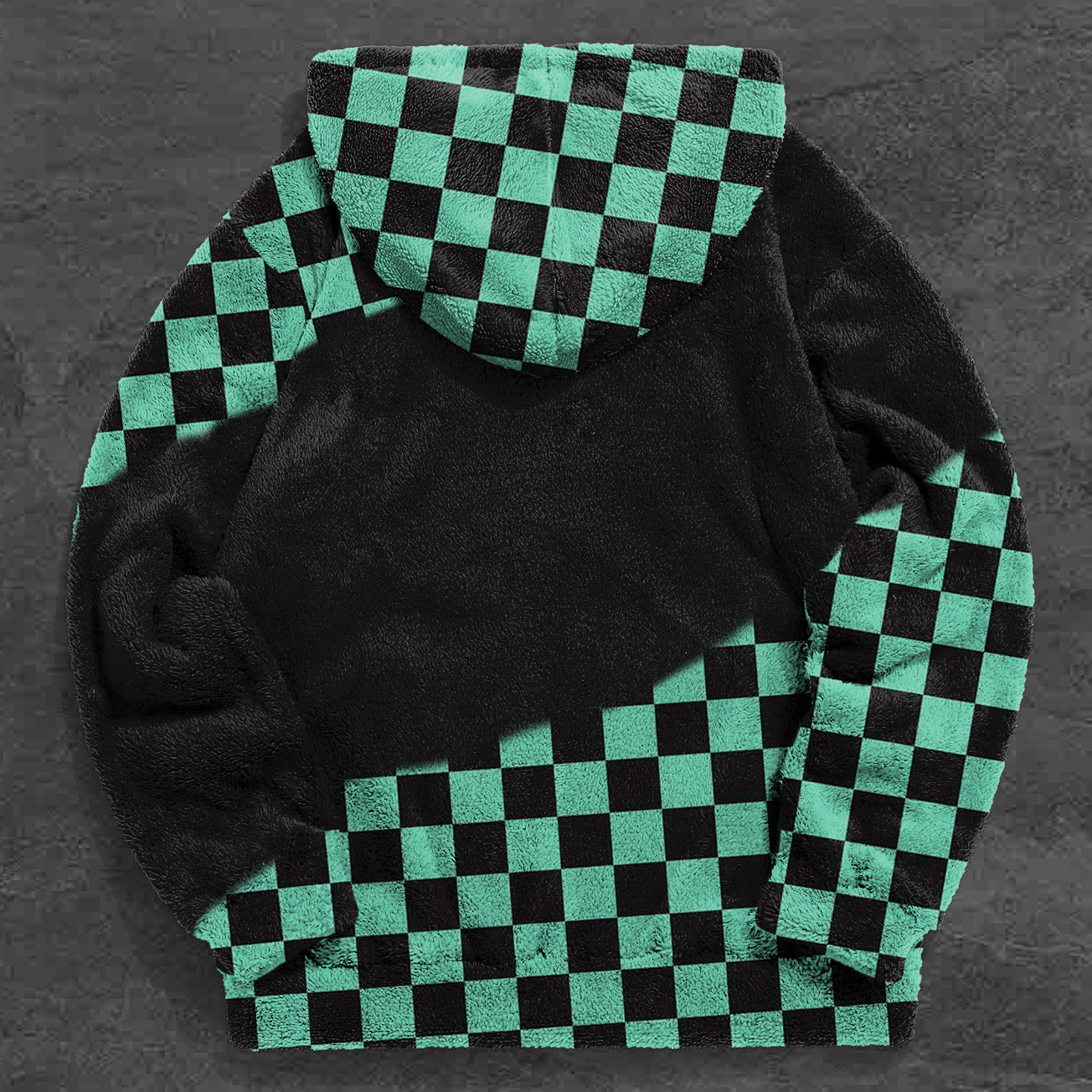 Checkerboard Chic Colorblock Casual Plush Hoodies