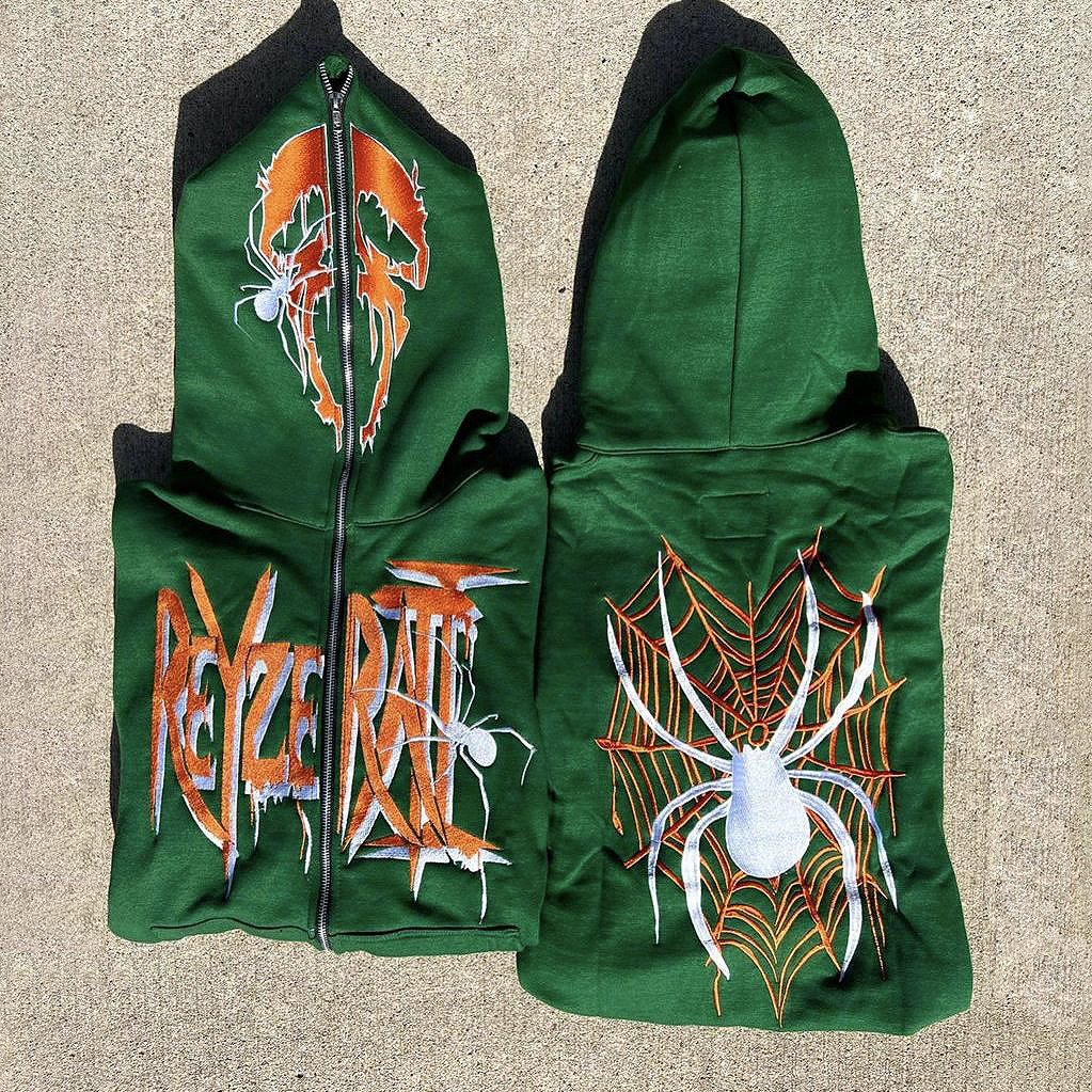 Stylish Skull Spider Print Long Sleeve Hoodie