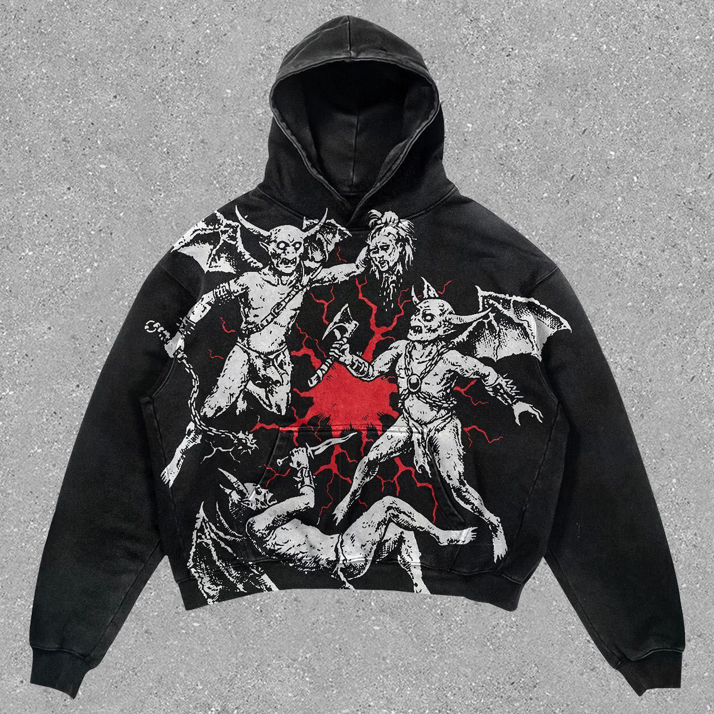 Retro Print Tide Brand Street Fashion Long Sleeve Hoodie