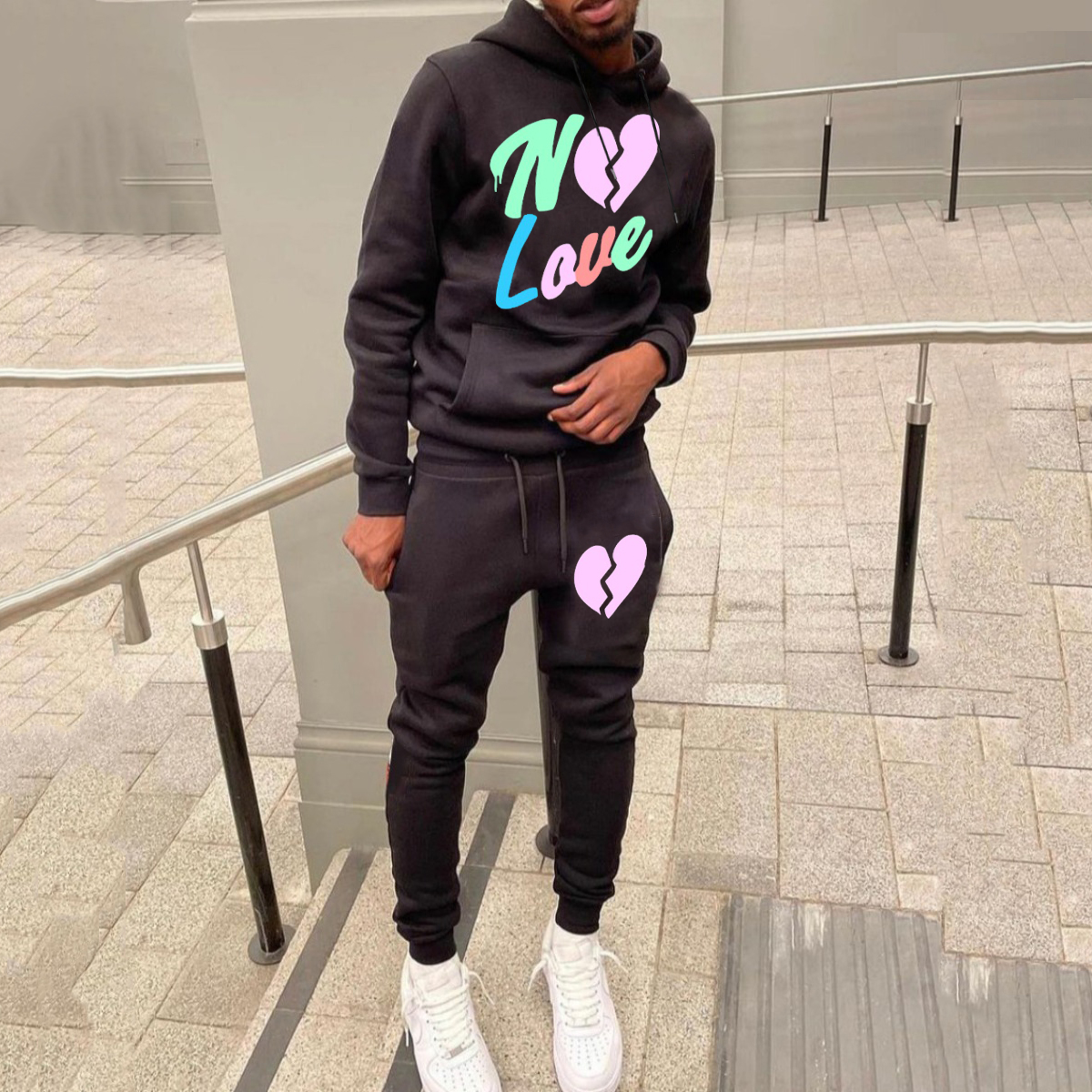 Casual No Love Print Hoodie And Pants Two Piece Set