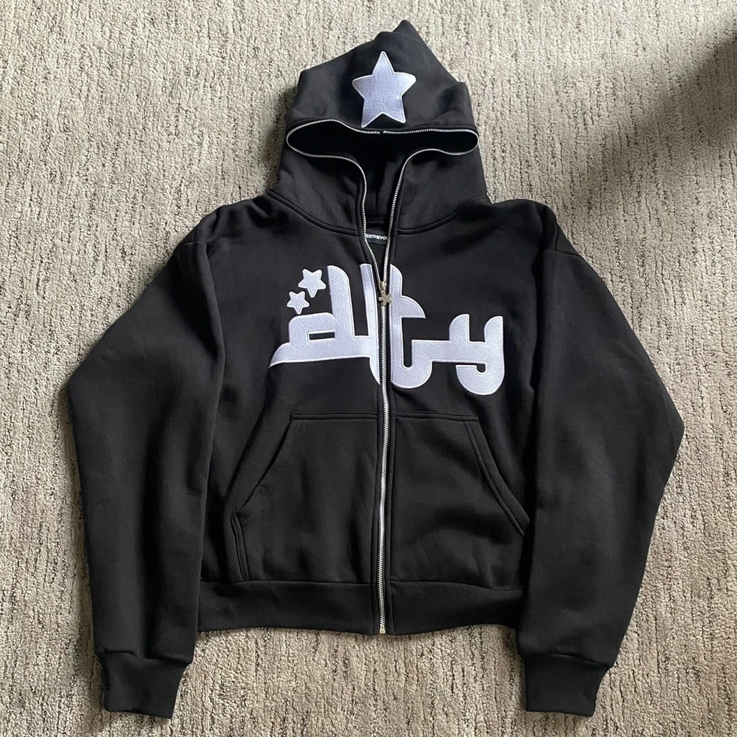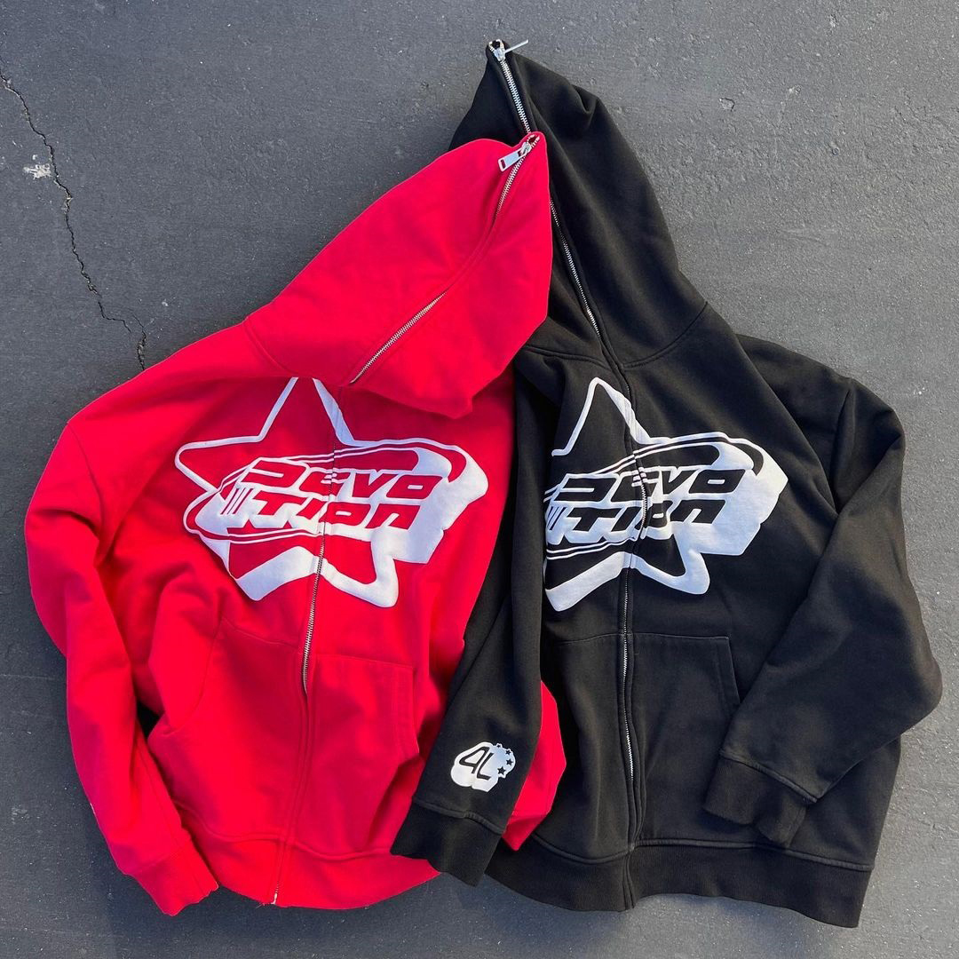 Retro Casual Trendy Brand Print Full Zip Hoodie