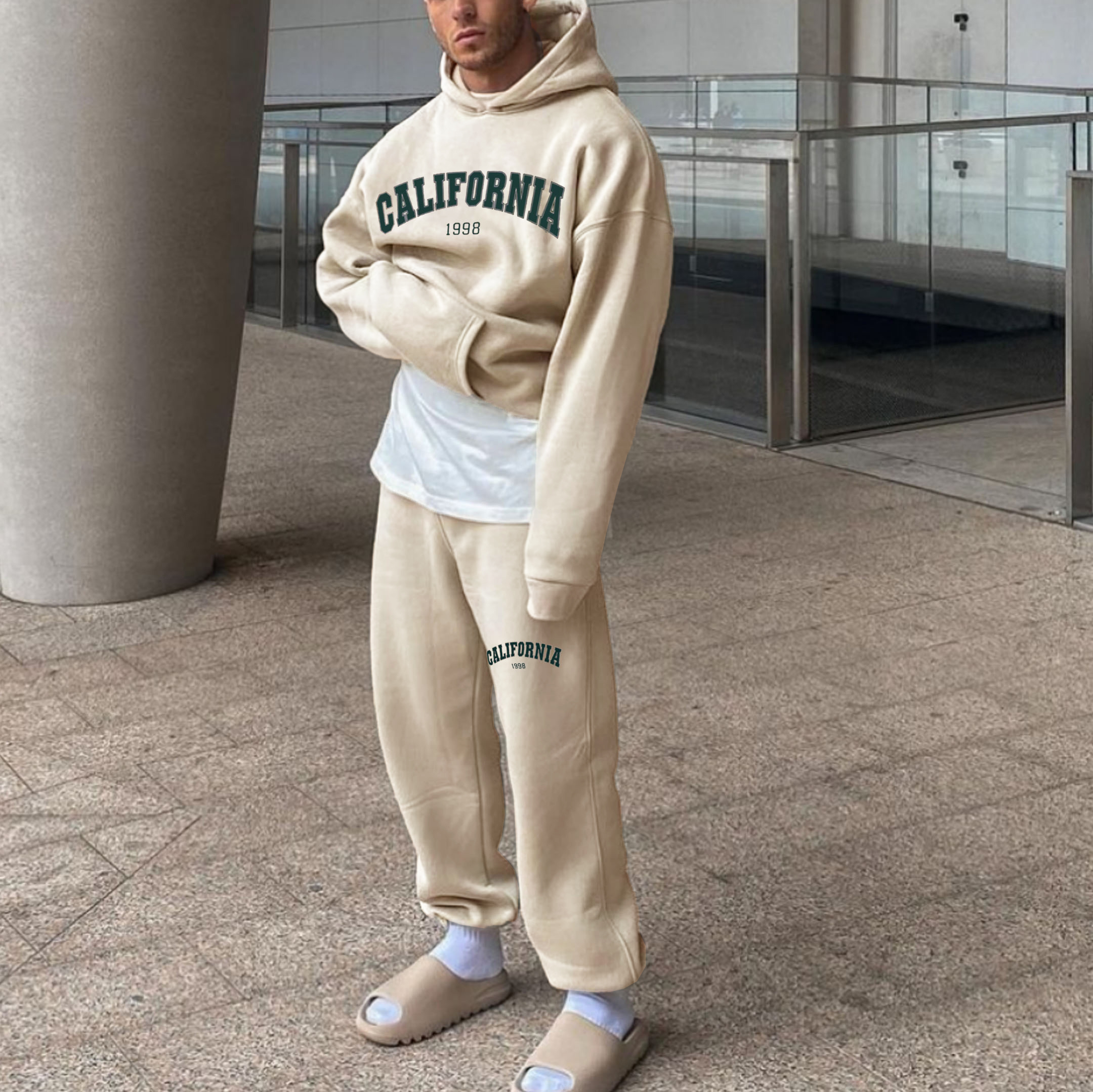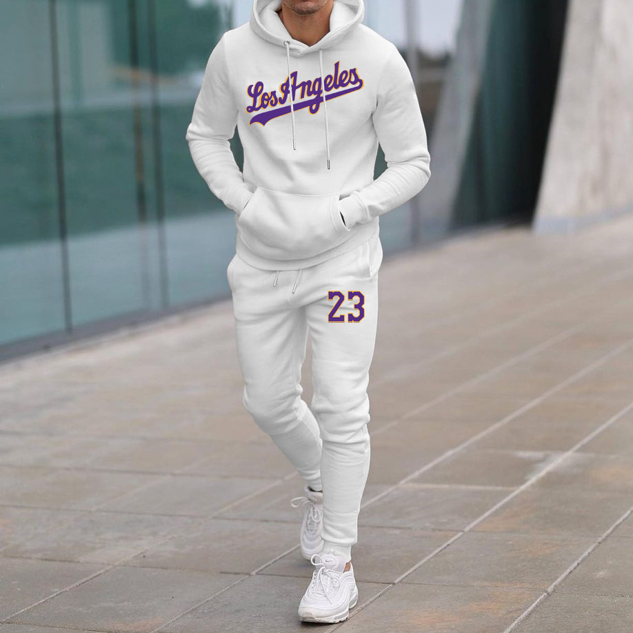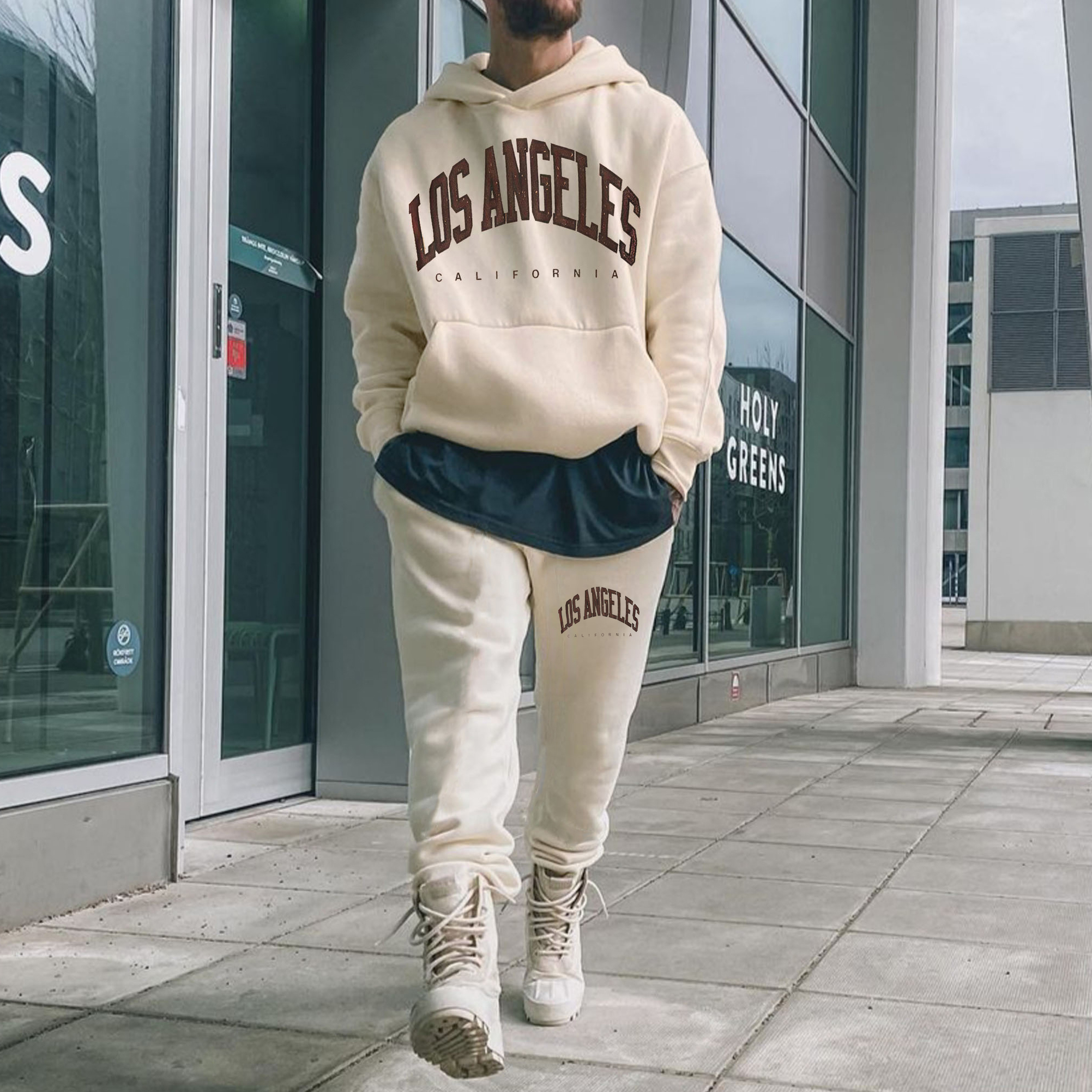 Casual Los Angeles Print Hoodie And Pants Two Piece Set