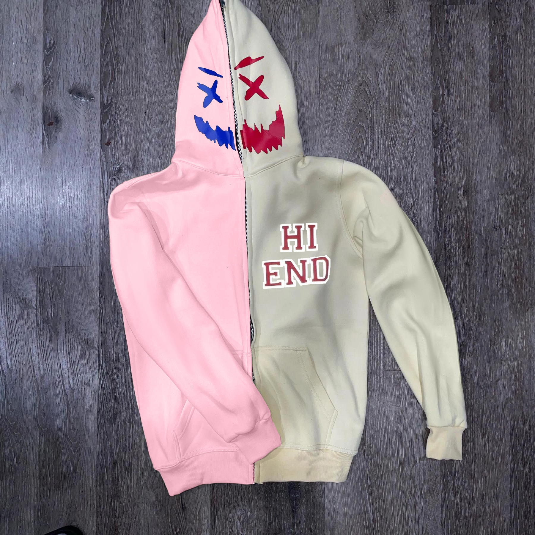 Stitching contrast color personality trendy brand pattern full zipper hoodie