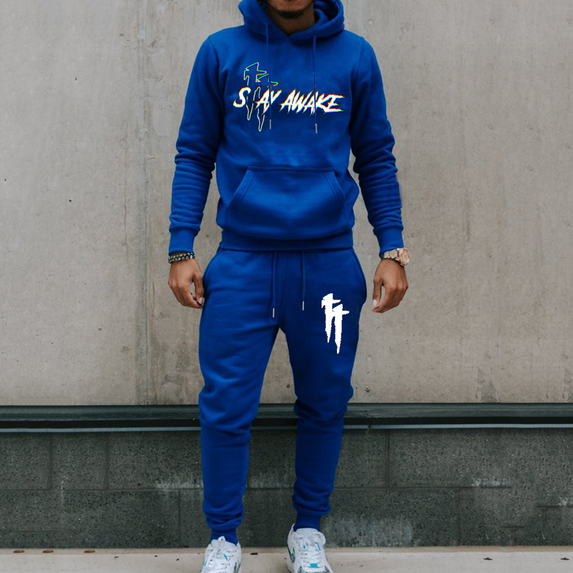 Casual Stay Awake Print Hoodie And Pants Two Piece Set