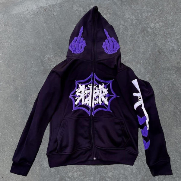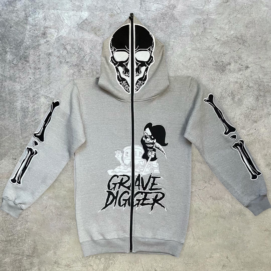 Undead Hatred Print Long Sleeve Zip Hoodie