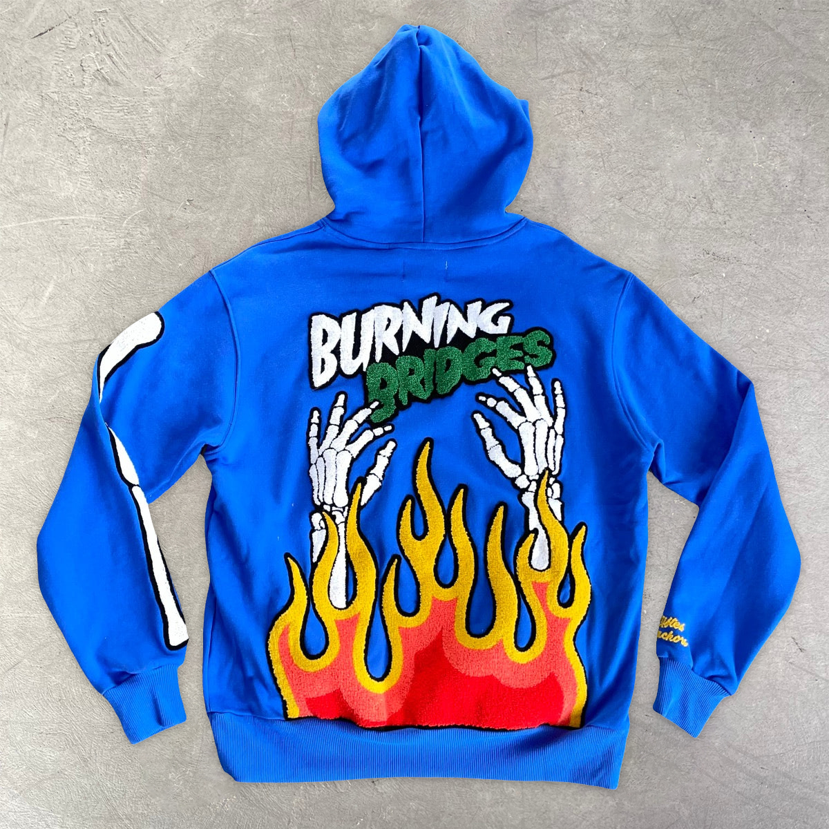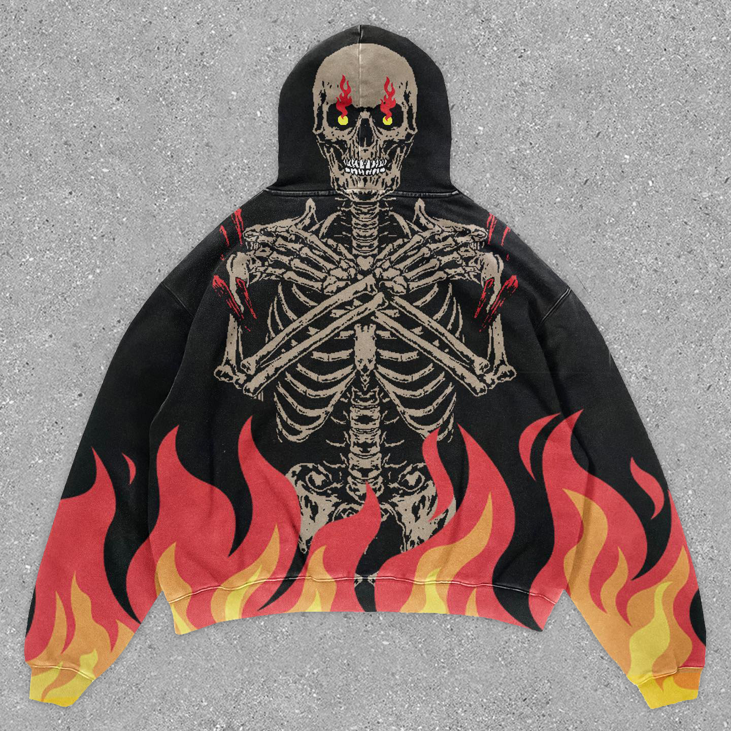 Meditation Skull Flame Print Long Sleeve Hoodie