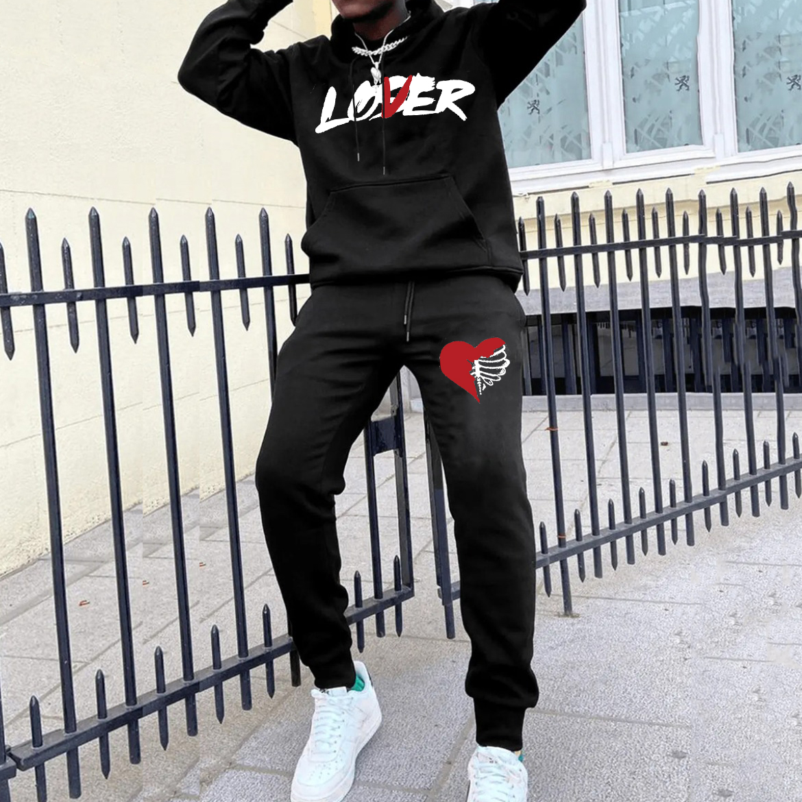 Casual Lover Print Hoodie And Pants Two Piece Set