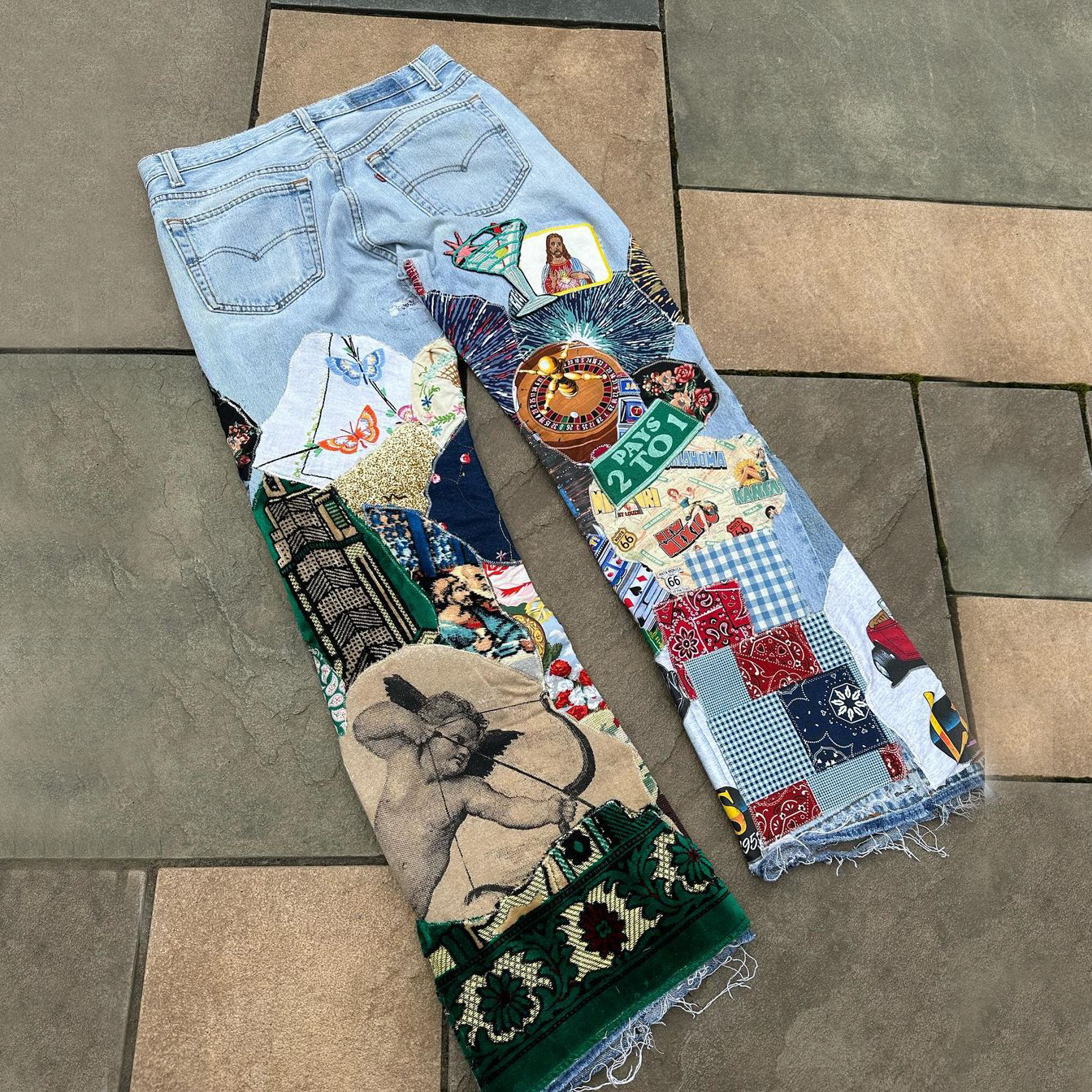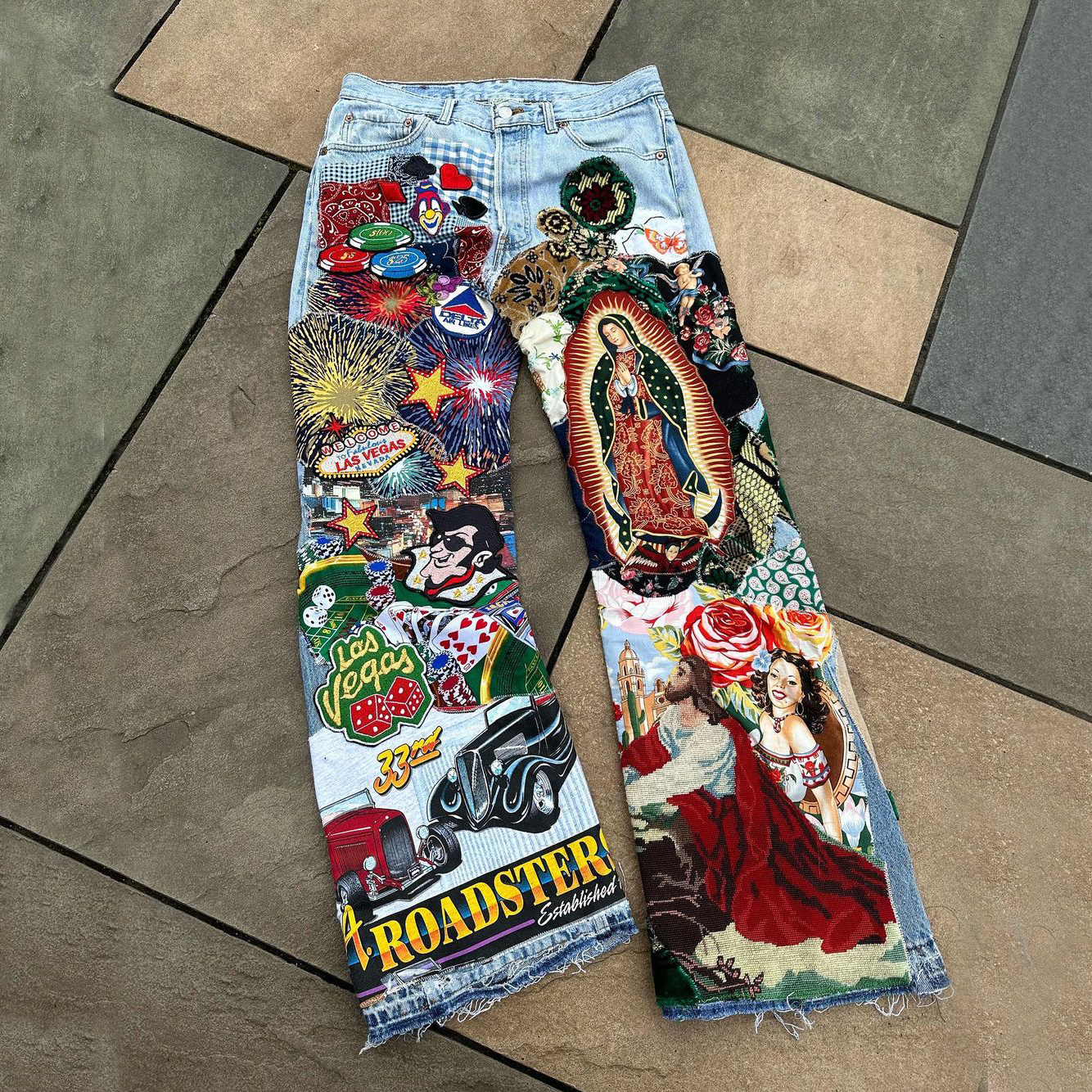 Limited Edition Las Vegas Lucky Prayer Panel Casual Street Jeans