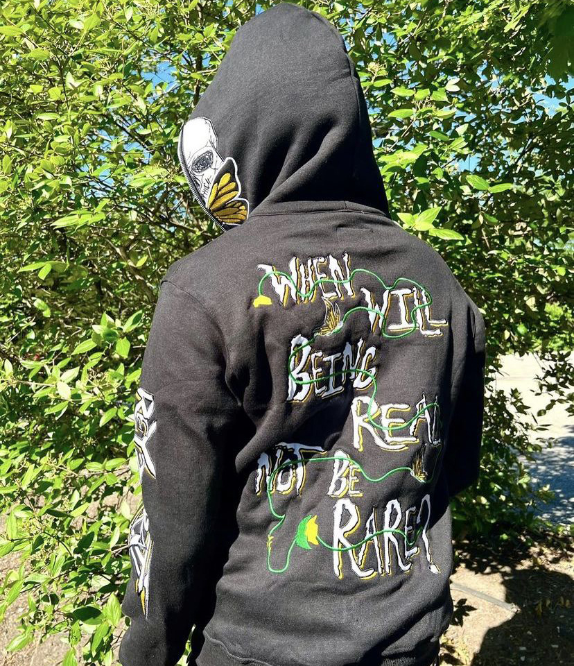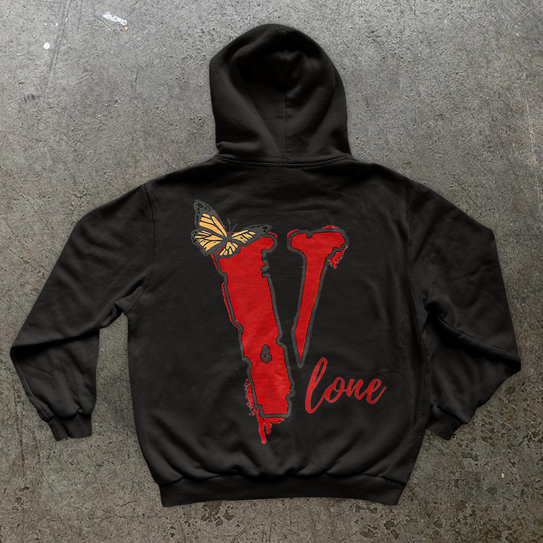 Fashion Street Print Butterfly Skull Long Sleeve Hoodie
