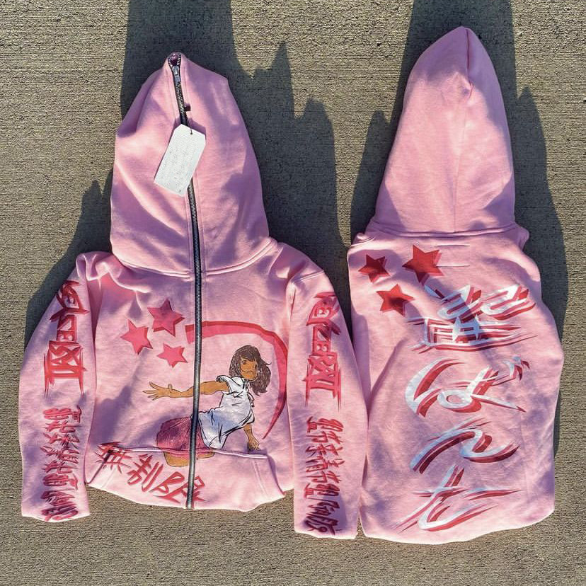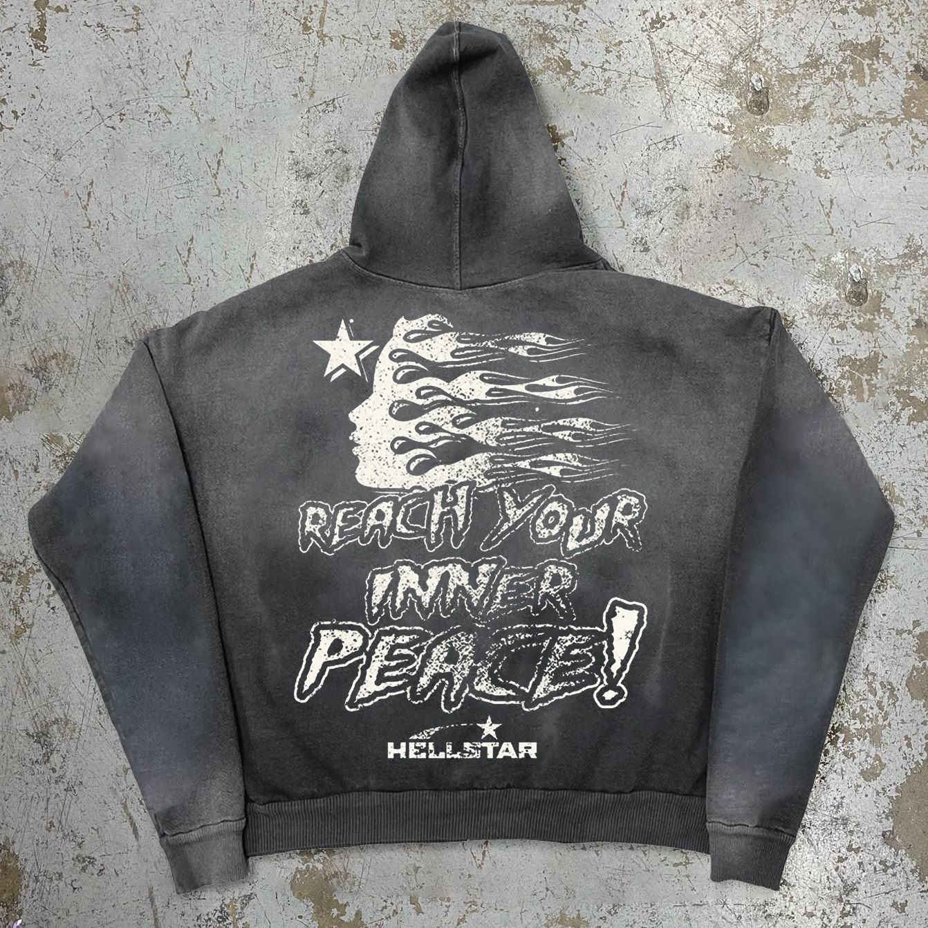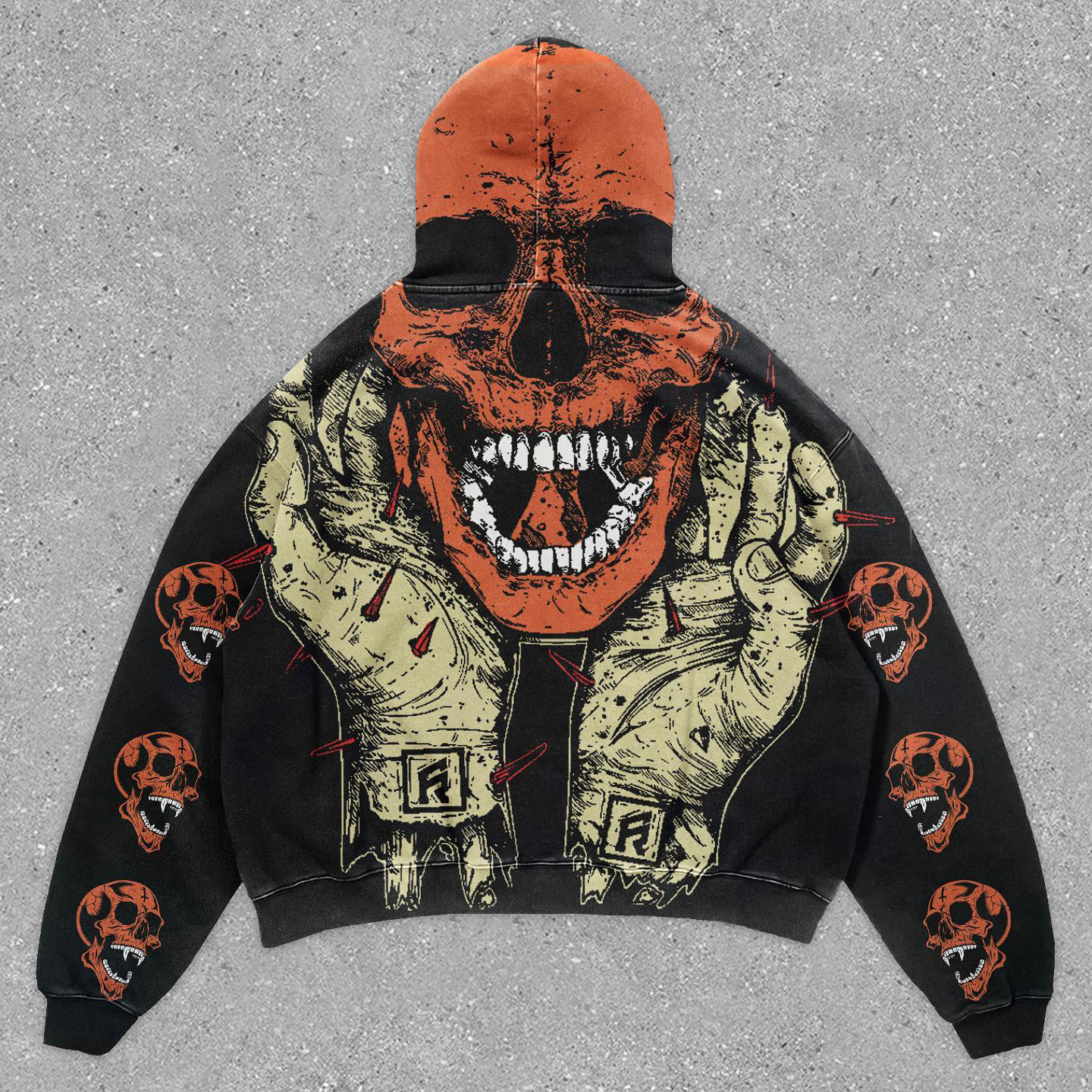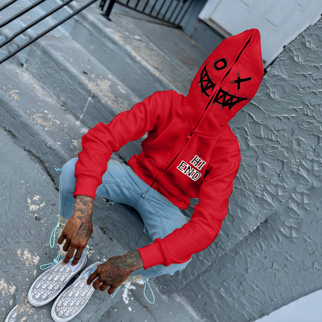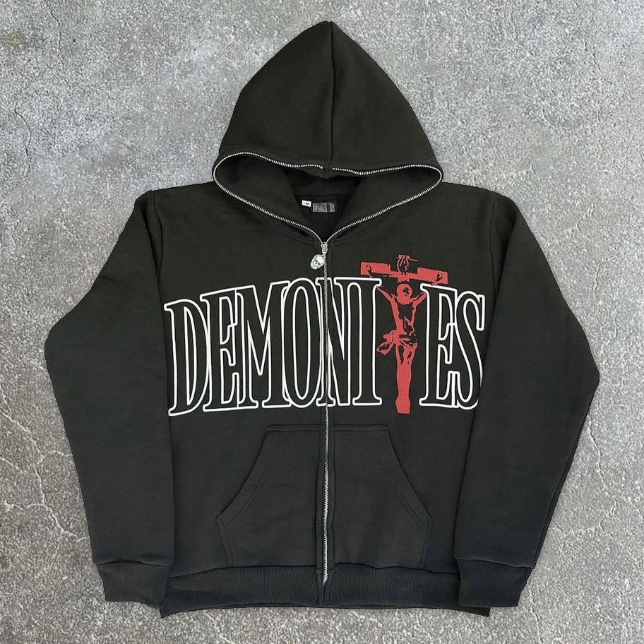Retro Street Hip Hop Long Sleeve Zip Hoodie