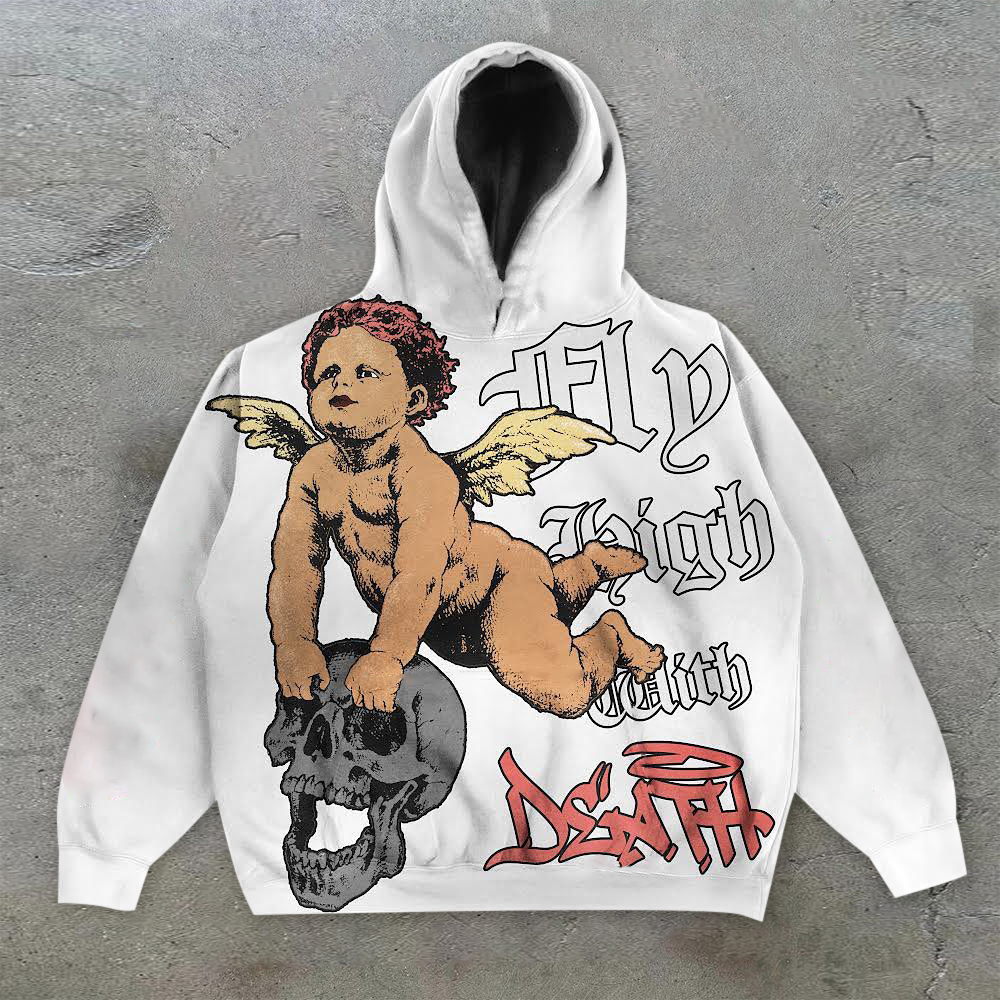 Trendy Angel Pattern Street Long Sleeve Hoodie
