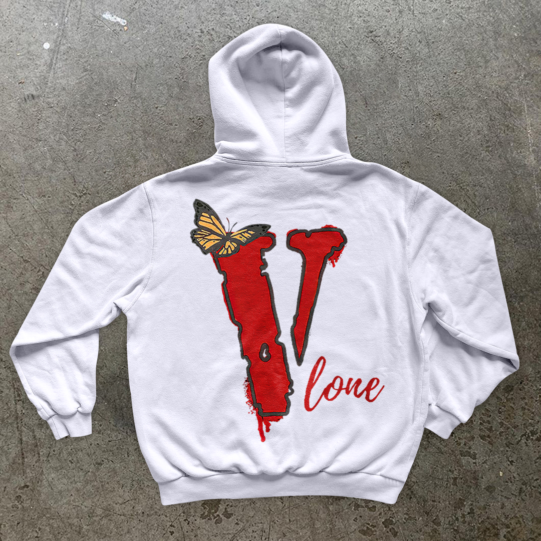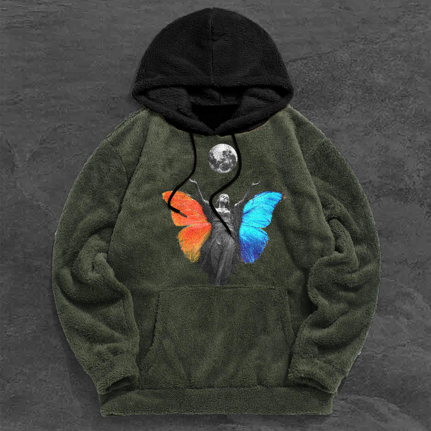 Tide Brand Print Retro Butterfly Fashion Long Sleeve Hoodie
