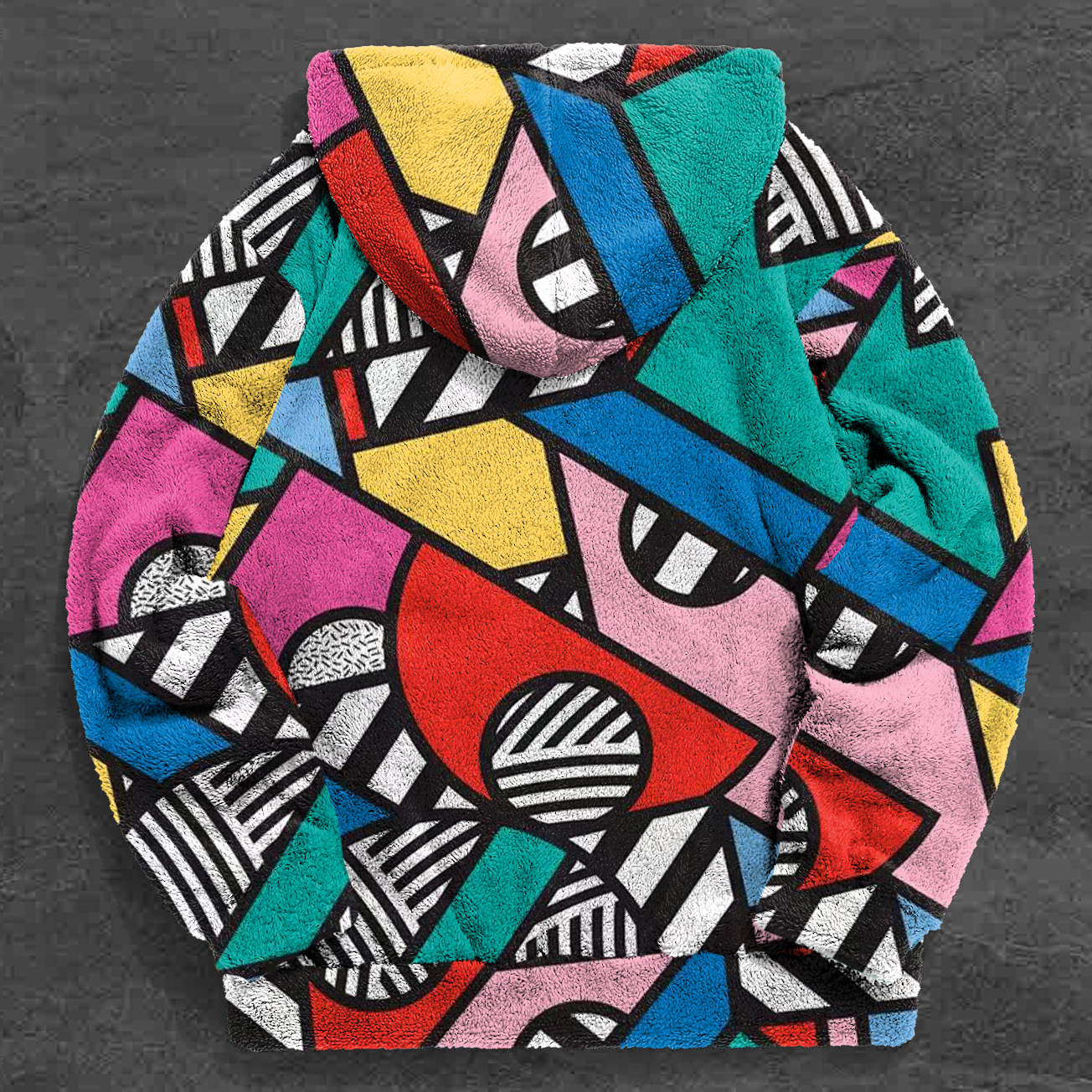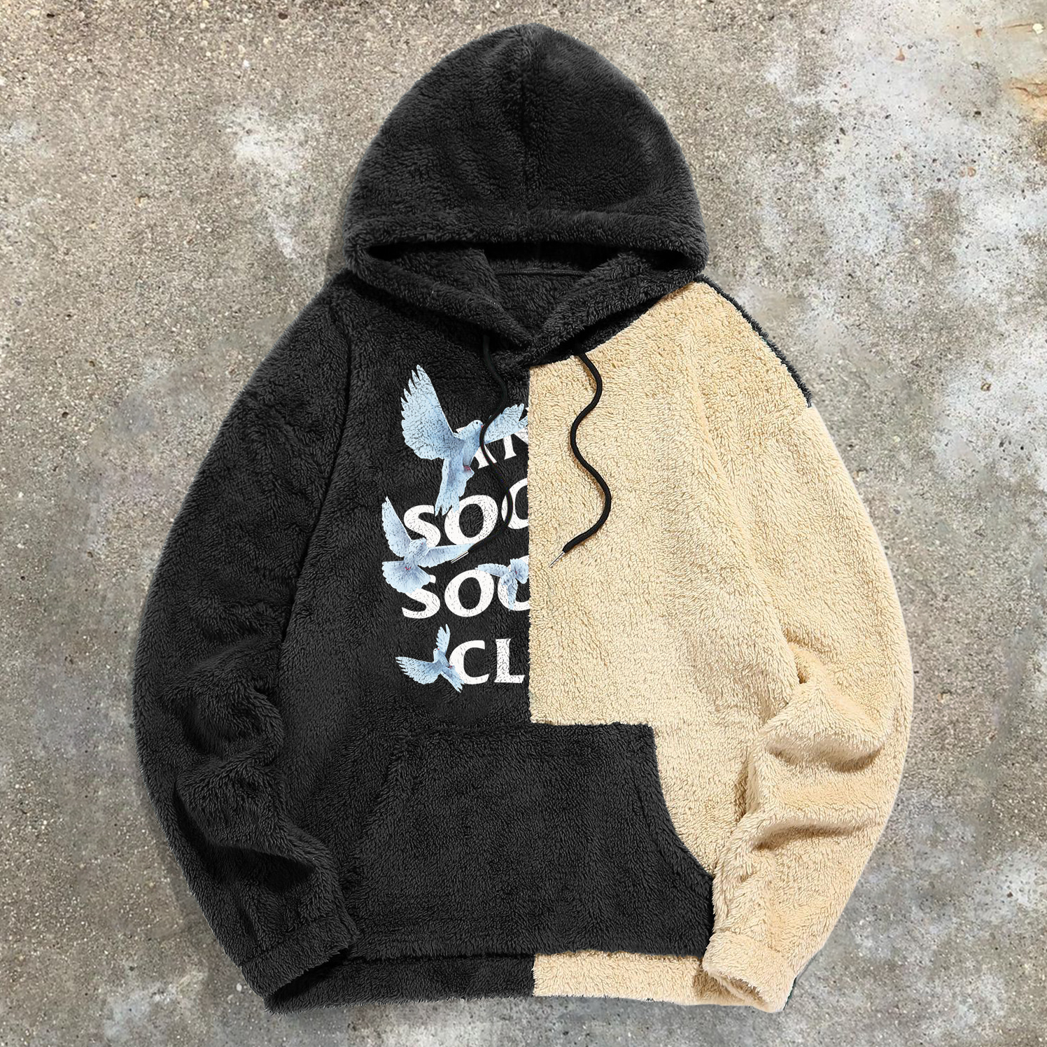 Patchwork Fashion Retro Contrast Plush Hoodie