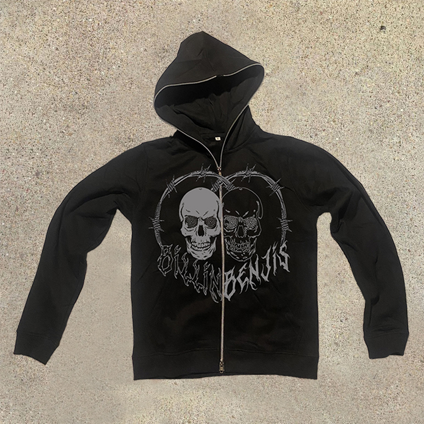 Fashion Street Print Butterfly Skull Long Sleeve Hoodie
