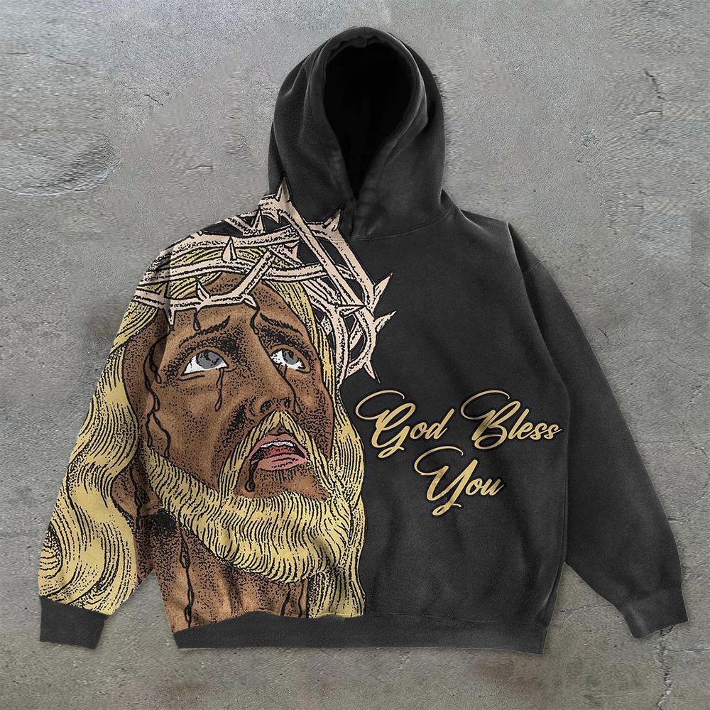 Retro Print Tide Brand Street Fashion Long Sleeve Hoodie
