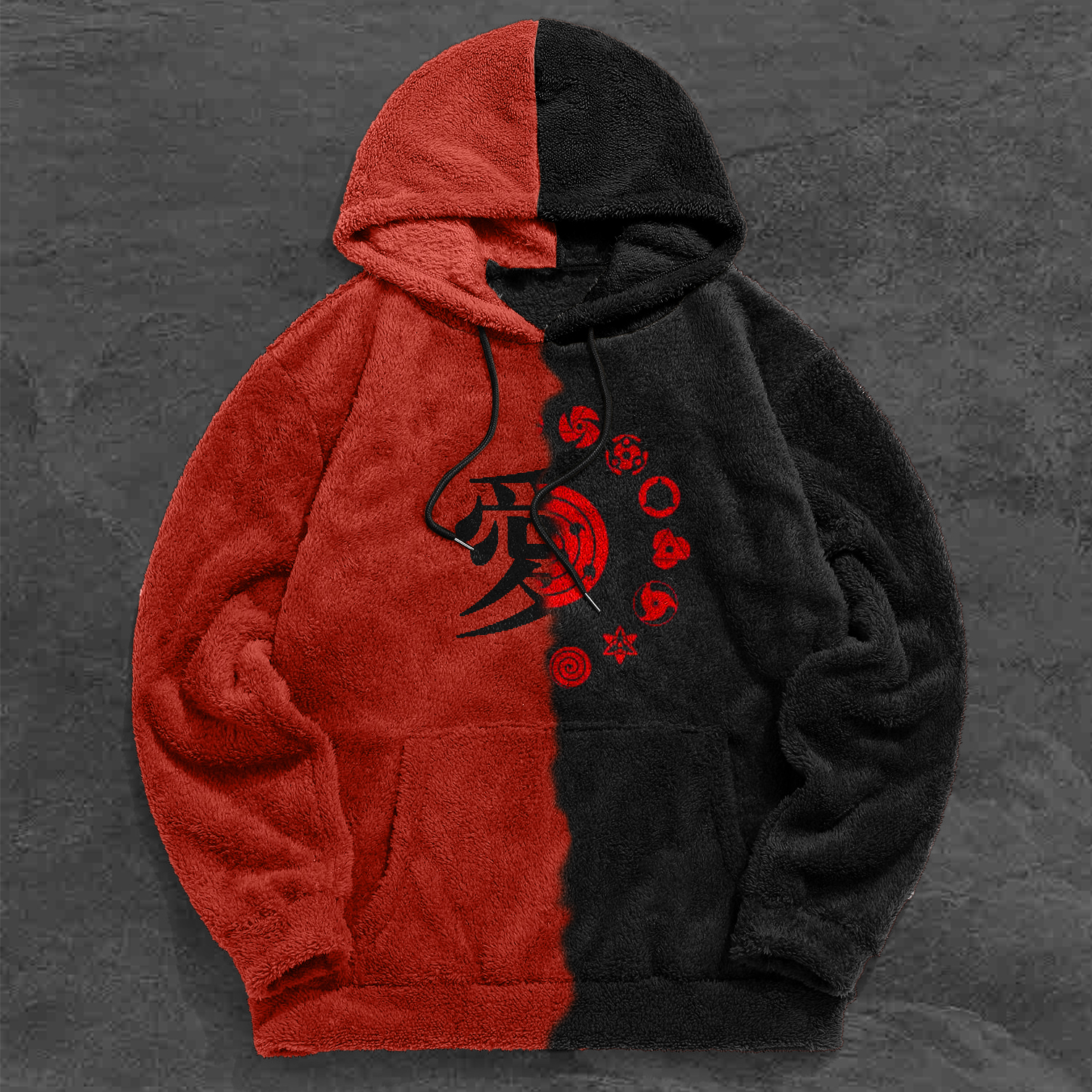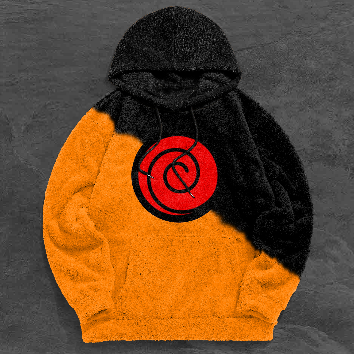 Personality Trendy Fashion Contrast Color Plush Hoodies