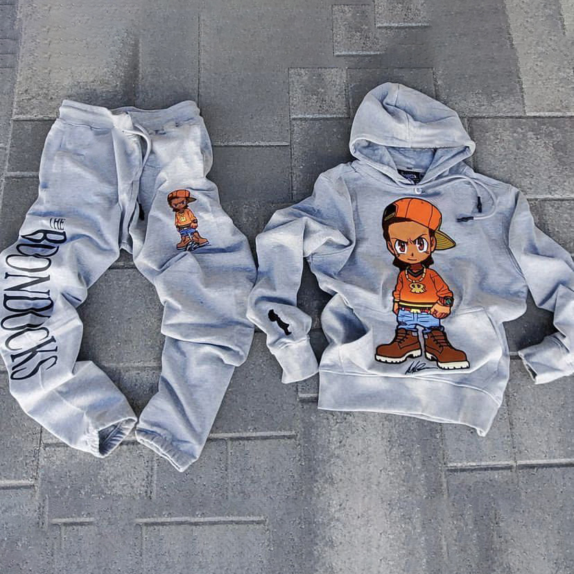 Fashion Preppy Cartoon Print Long Sleeve Hoodie Two Piece