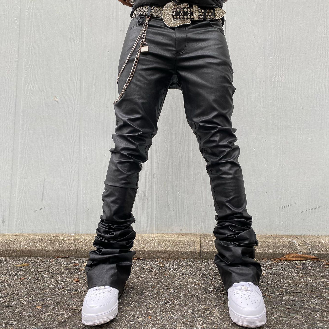 Fashion Street Leather Pants Extended Wide Leg Flare Casual Pants